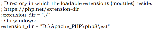 修改extension_dir指向绝对路径**(完整路径),默认是相对路径(.\ext),去掉前面的;